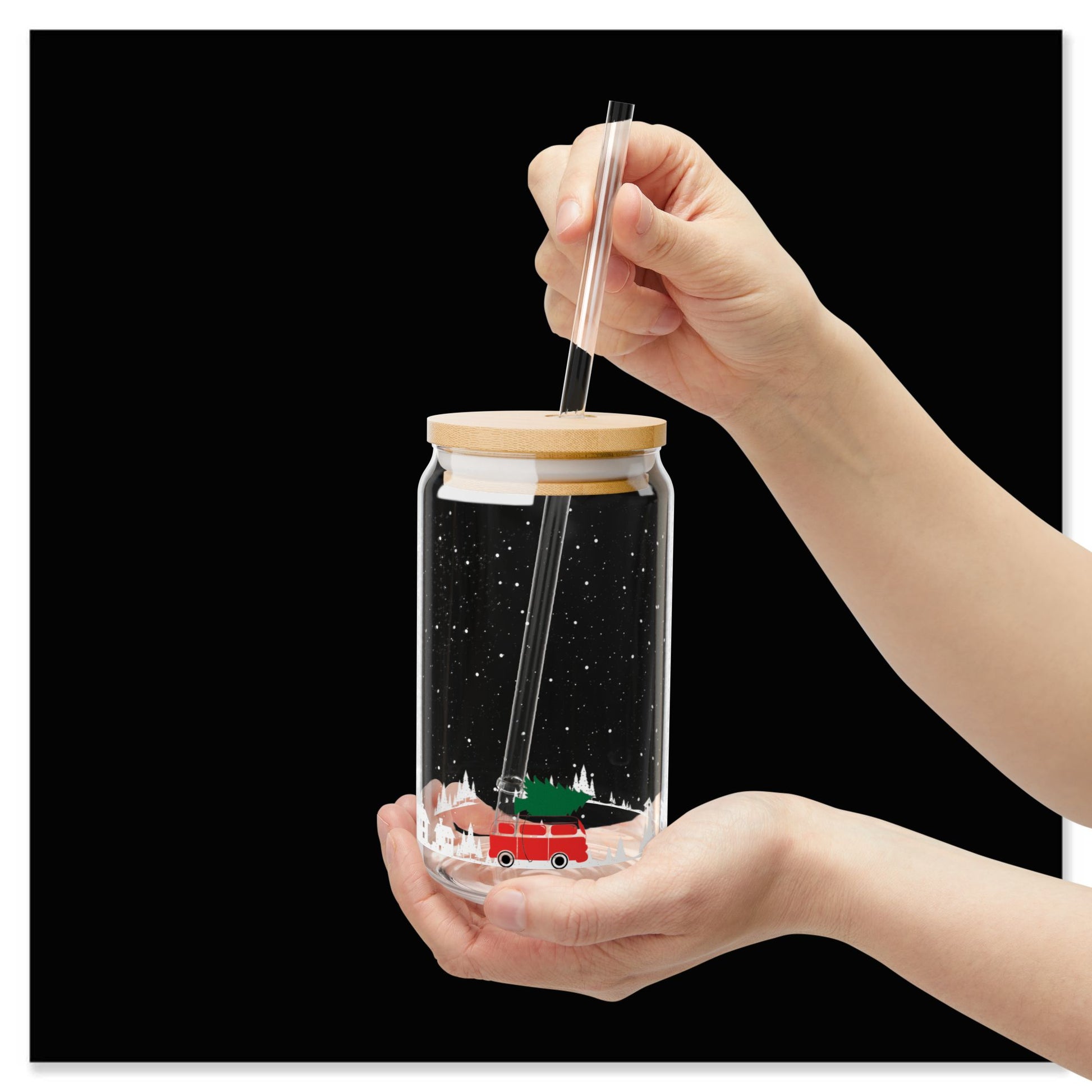 This Christmas minivan sipper glass, 16 oz, with vibrant colors and a clear tempered glass construction, is perfect for adding a festive touch to your holiday celebrations. It can be a great gift for anyone looking to bring a bit of holiday cheer to their daily beverage routine.