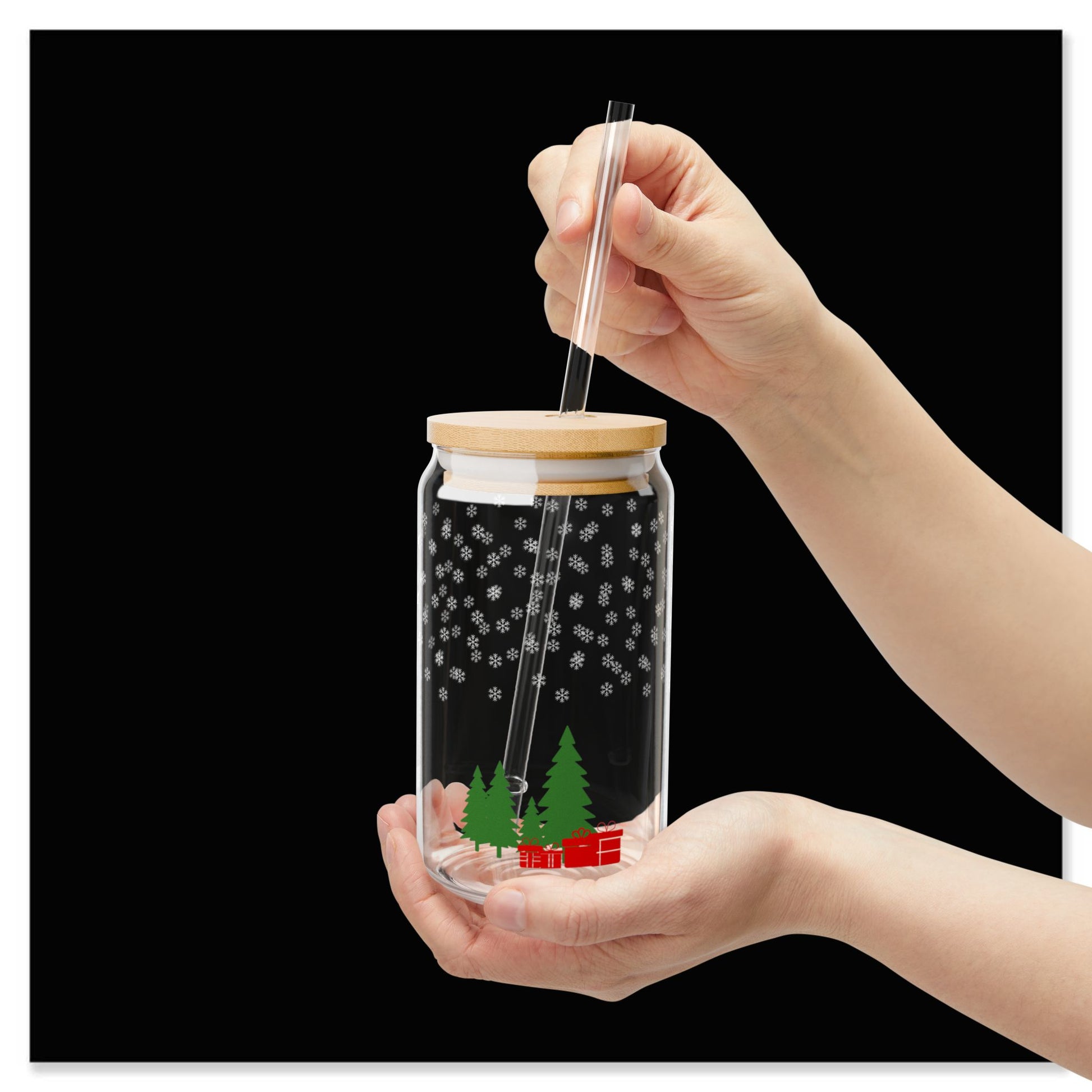 Get into the holiday spirit with this Christmas tree with snow Sipper Glass, 16oz. Enjoy your favorite beverages in style with this festive and vibrant glass, perfect for Christmas parties and gatherings. Great for both hot and cold drinks, this sipper glass is a must-have for anyone looking to add some holiday cheer to their drinkware collection.